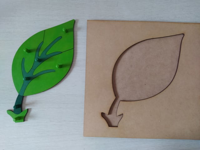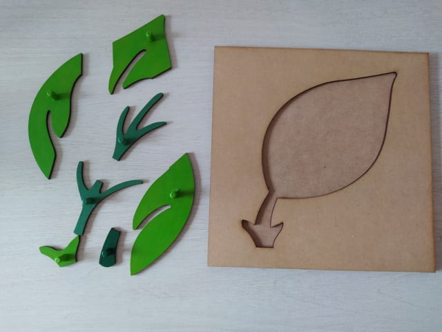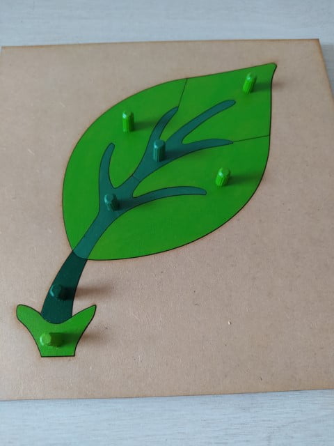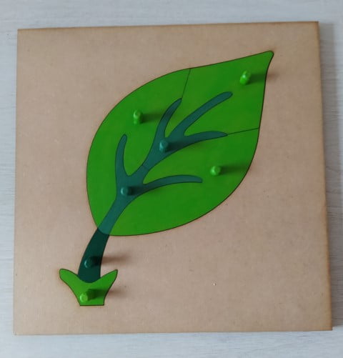El puzzle hoja pertenece al área de botánica en un ambiente Montessori. Invita al niño a conocer las partes que componen la misma e investigar sobre los distintos tipos y funciones. Con perillas para un fácil agarre de las piezas, utilizando el movimiento de pinza con sus dedos.
